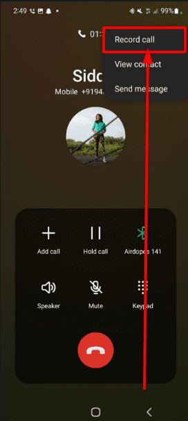 3. Click on it and tap on the “Record Call” option.