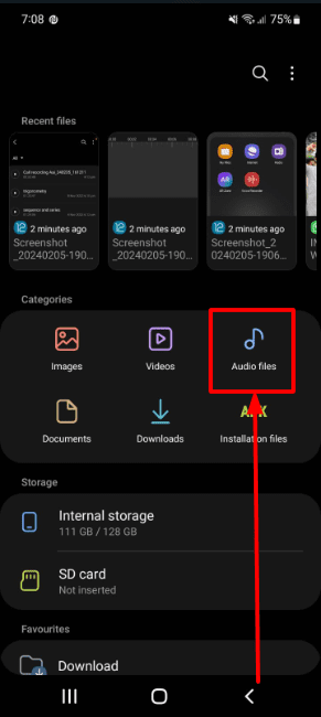 2. Tap on the “Audio Files”.